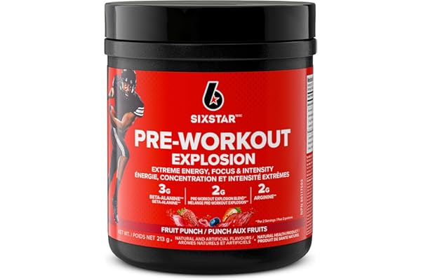 - Ignite Your Training Sessions: SIXSTAR Pre-Workout Explosion fires up your workouts with extreme energy, focus, and intensity.* Fruit Punch flavour. 30 scoops per tub.