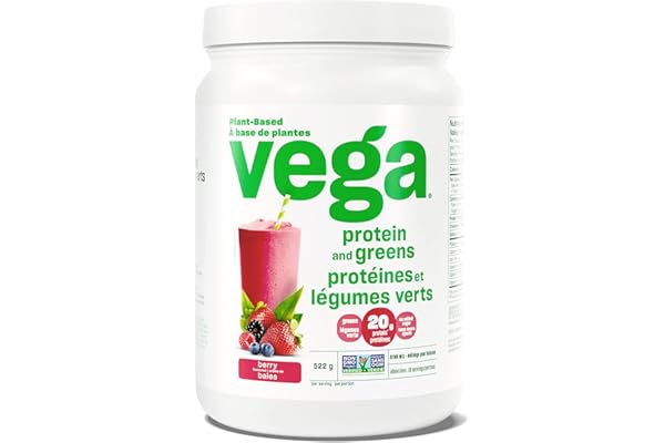 Vega Protein and Greens Berry (18 Servings) Plant Based Protein Powder Plus Veggies, Vegan, Non GMO, Pea Protein For Women and Men, 522g (Packaging May Vary)